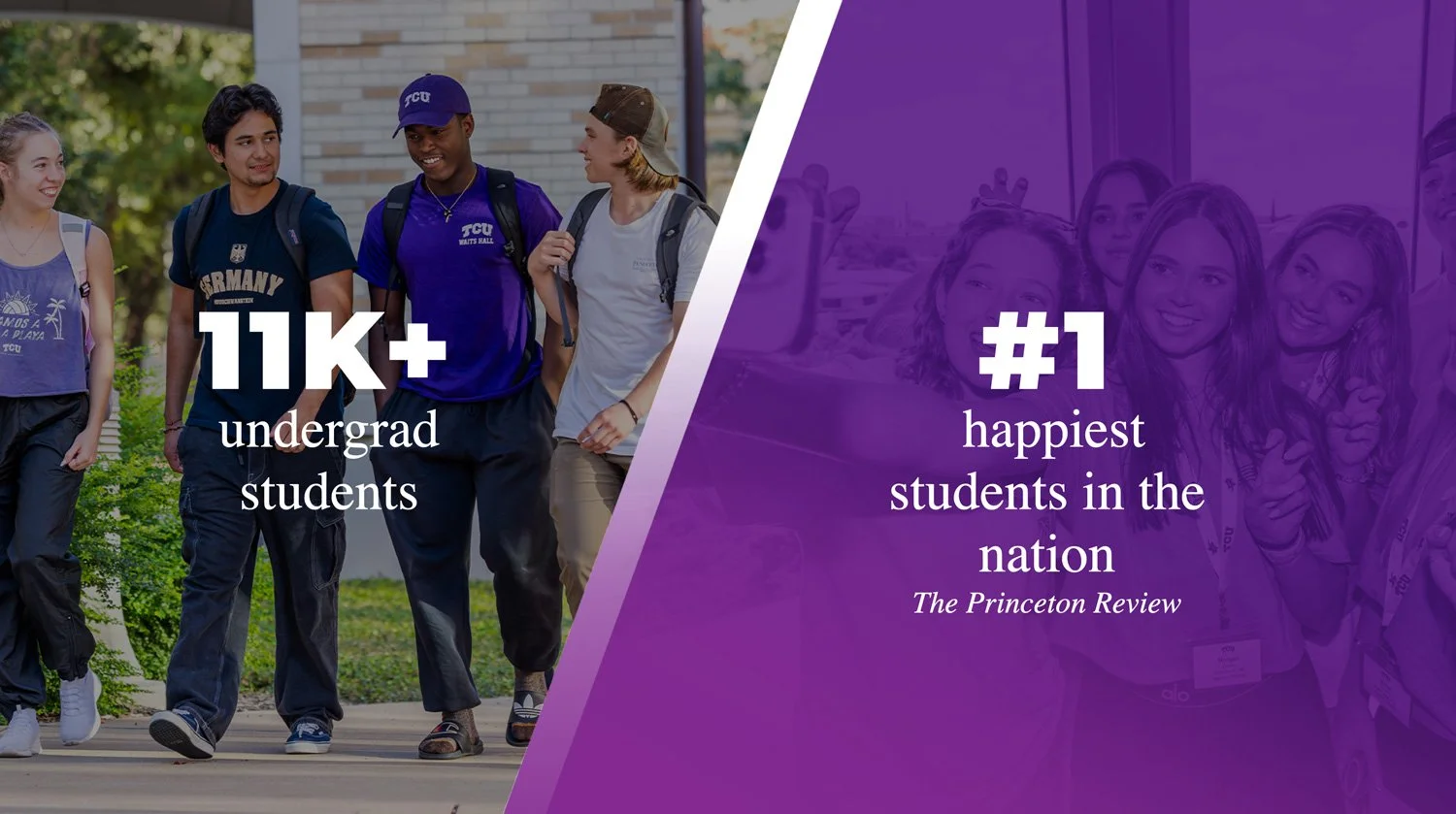 After completing a successful BOOST project, 5° partnered with Texas Christian University (TCU) to lead a comprehensive enrollment campaign designed to refresh and elevate the university’s undergraduate admissions experience. From redesigned admissions materials and on-campus wayfinding to social media content, digital advertising, and presentations, the campaign focused on amplifying what makes TCU truly distinct.