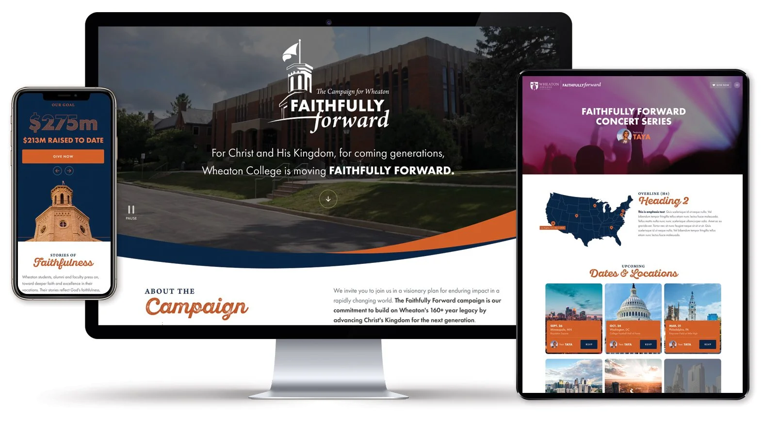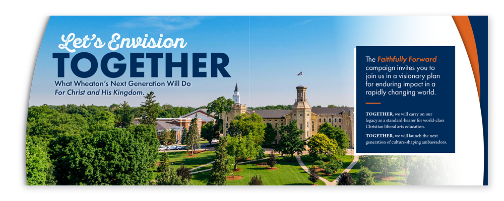 With a visionary plan for enduring impact, Wheaton College set out on a landmark journey to advance its historic mission. The College partnered with 5° Branding for both a donor event, The Wheaton Weekend, and the public phase of the Faithfully Forward campaign to raise more than $250 million. In the action-packed months leading up to the rollout, we collaborated to develop campaign materials and showcase Wheaton’s compelling story.