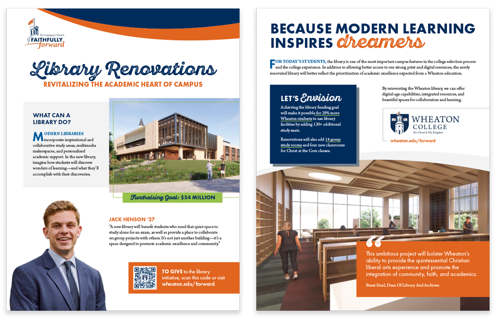 After the successful private phase, Wheaton launched the public phase of the Faithfully Forward Campaign in the fall of 2025. The project included a broad range of print, digital, and environmental collateral.